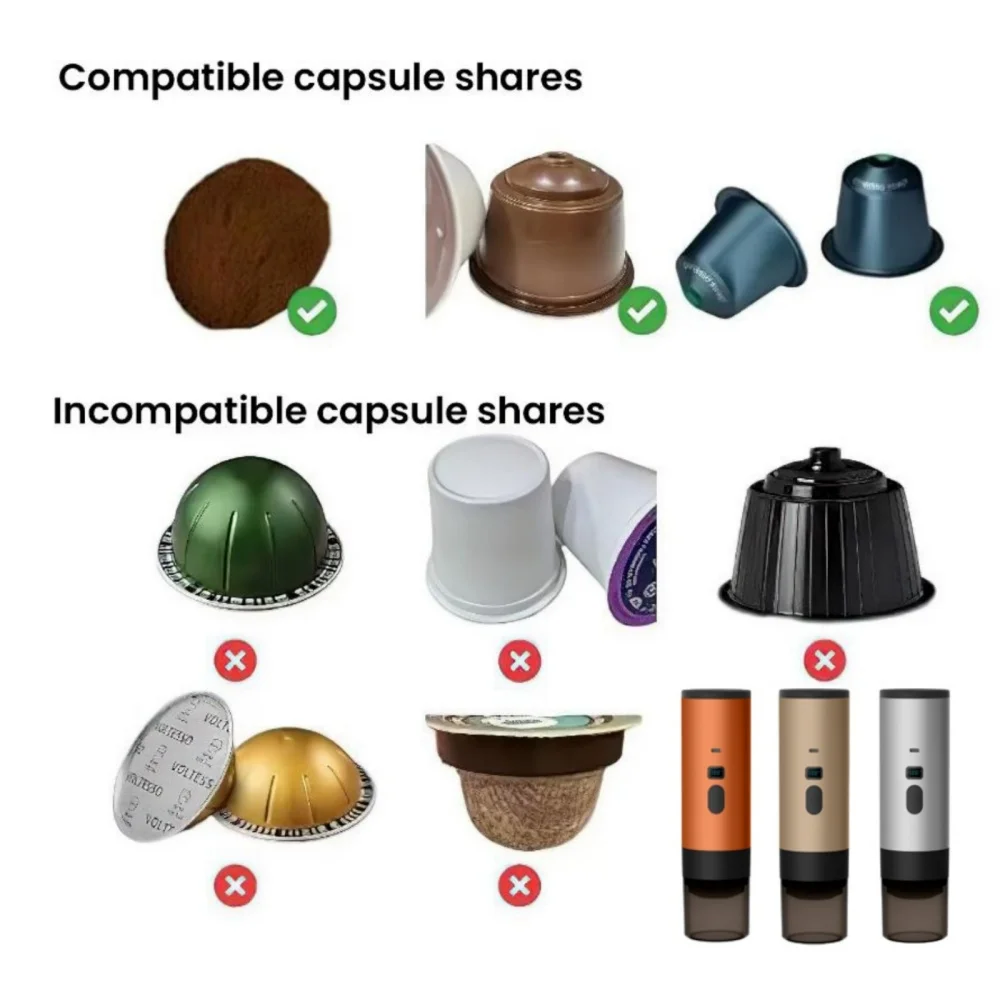 Disfruta de un espresso de calidad en cualquier lugar con esta cafetera portátil recargable. Compatible con cápsulas y café molido, ofrece extracción a presión y calentamiento inteligente, ideal para viajes, coche, oficina o camping.